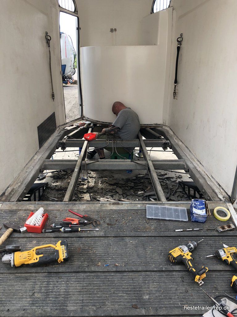 Ejeren af denne hestetrailer havde os på besøg ang. en anden hestetrailer men da vi opdagede deres ny indkøbte hestetrailer var bund rådne måtte vi hurtig fikse den